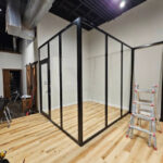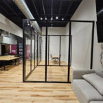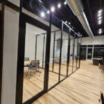 Offices Partitions with European Systems LG65 and Clear Tempered Glass.